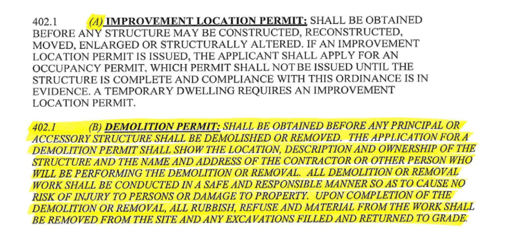 The Board voted to add a required Demo Permit to the 402.1 Building Ordinance.